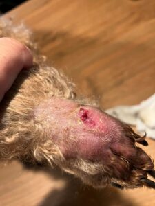 Auch mein anderer Hund hatte ein schlimmes Erlebnis – durch eine Granne. Diese kleinen, spitzen Pflanzenteile setzen sich oft unbemerkt in Pfoten, Ohren oder Fell fest. Bei uns führte das zu einer riesigen Schwellung an der Pfote – mit einem tiefen, entzündeten Loch. Schmerzhaft und langwierig in der Behandlung.